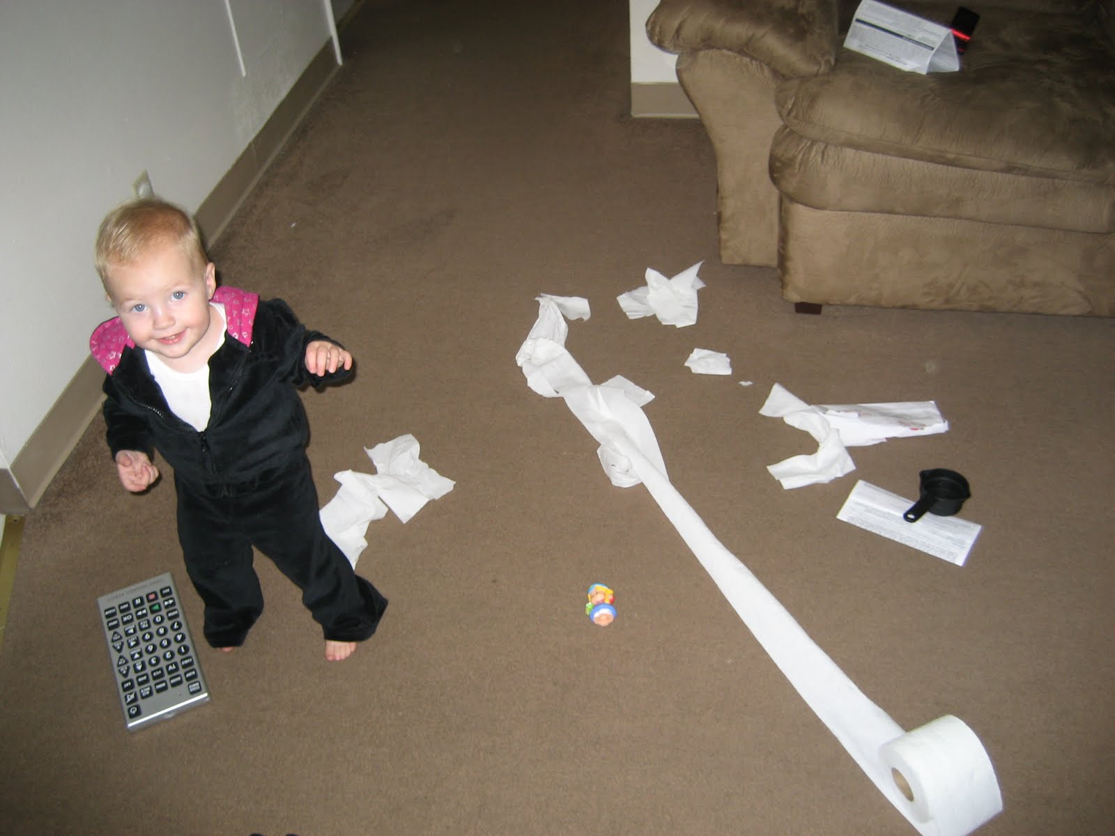 And then everything started moving in fast forward. I pulled Quinn out of the tub, quickly noticing the other pieces (that she, thankfully, hadn't been playing with), wrapped her in a towel and set her on the floor- with strict instructions not to move (ha ha). Then I ran for the bleach and after draining the tub and washing down all the 'particles' I refilled the tub with HOT water and dumped in some bleach. Then I took Quinn into the kitchen and filled up the sink with some warm water. Then I proceeded to bathe her while she clung to my shirt- she did NOT appreciate the spur-of-the-moment sink bath. To make matters worse- the hot water that I had used to disinfect the tub, had completely drained our hot water tank. SO, I had to rinse Quinn off using water that was slightly warmer than glacier runoff. By this time, she was screaming at the top of her lungs, and I was..... well, wishing the whole fiasco was over with (to put it mildly).